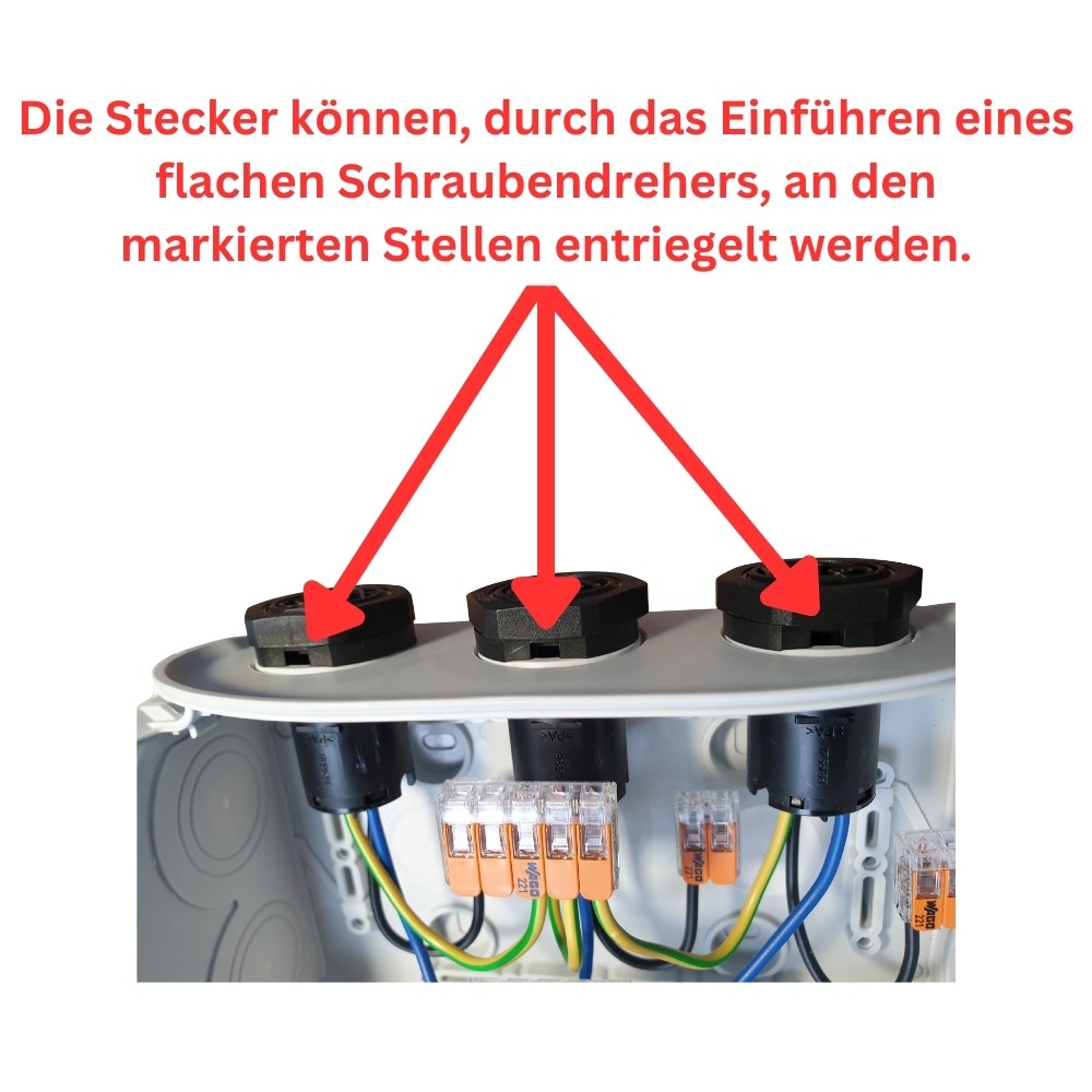 Professionelle Einspeisedose mit Wieland RST20I3 Buchsen für Steckersolargeräte (Balkonkraftwerke) – sicher, normgerecht und langlebig
