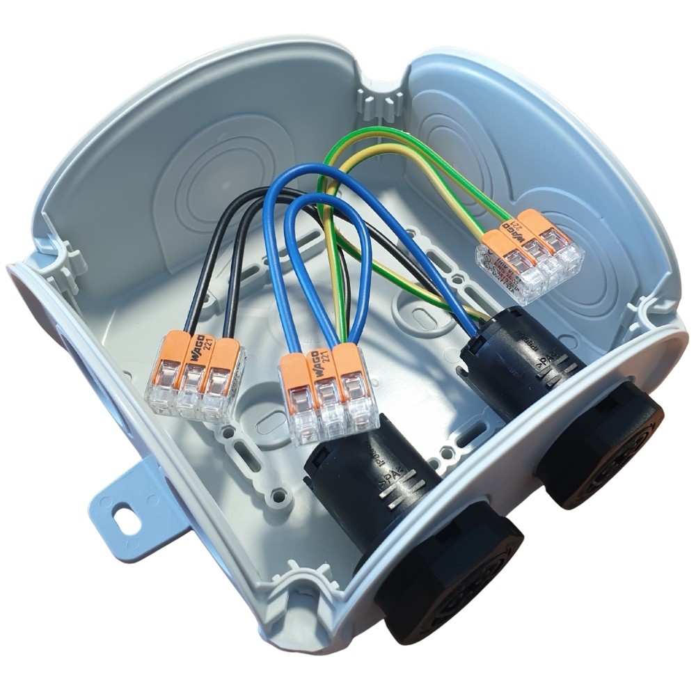 Professionelle Einspeisedose mit Doppel-Wieland RST20I3 Buchsen für Steckersolargeräte (Balkonkraftwerke) – sicher, normgerecht und langlebig